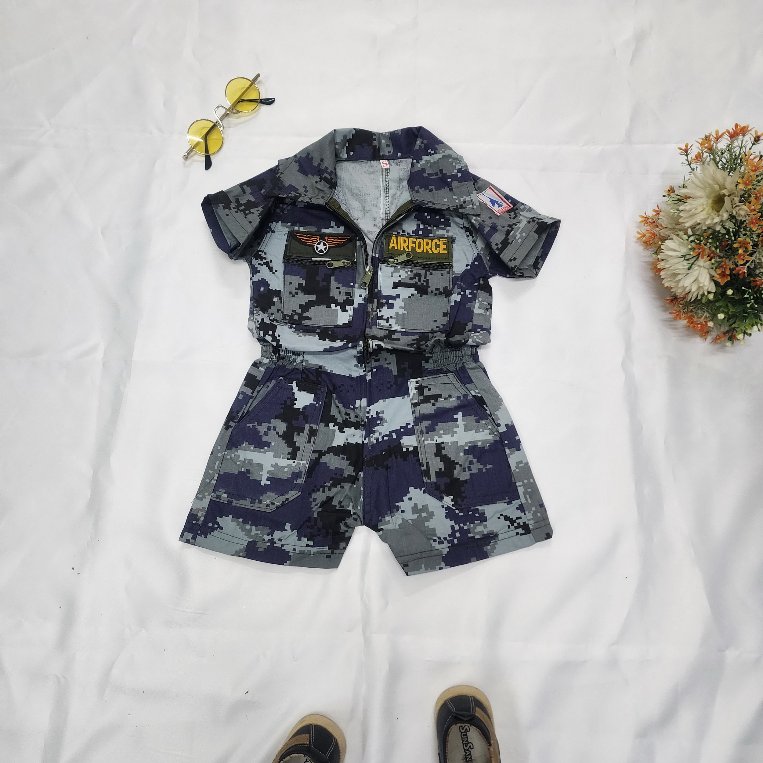 ชุดนักบินเด็กขาสั้น ลายพรางเทากรมท่า