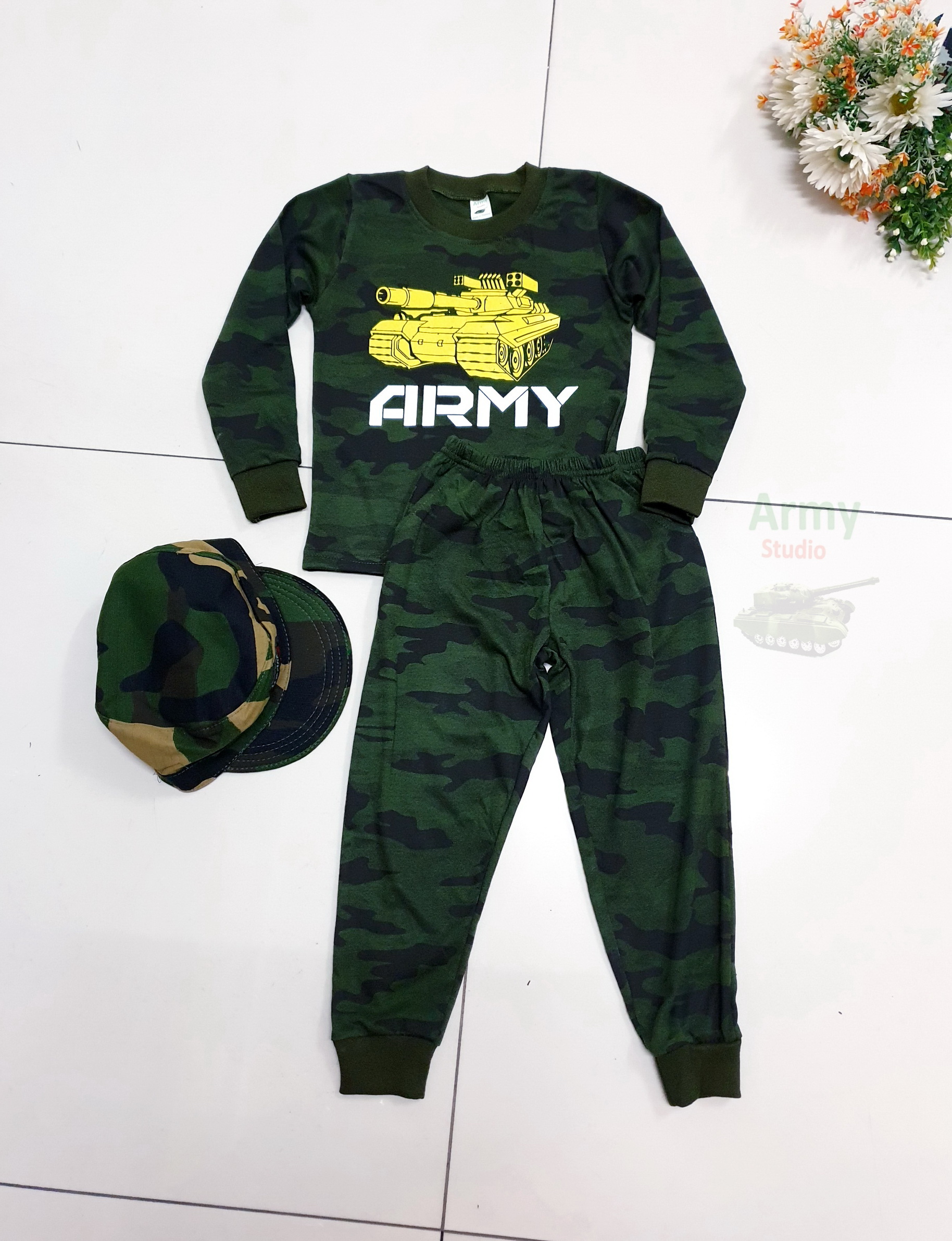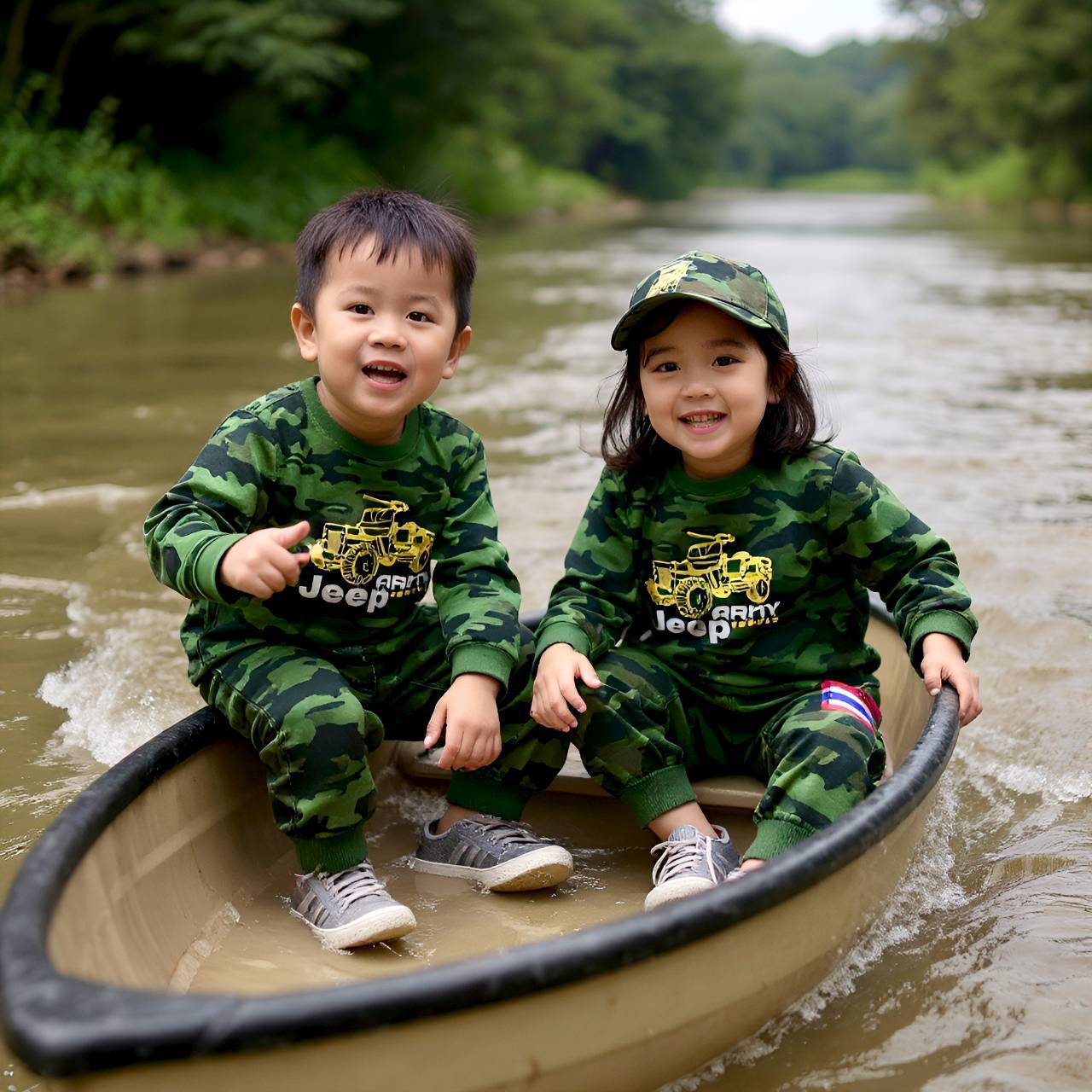 ชุดทหารเด็กลายพราง 2 ชิ้น เป็นชุดเสื้อแขนยาว กางเกงขายาว