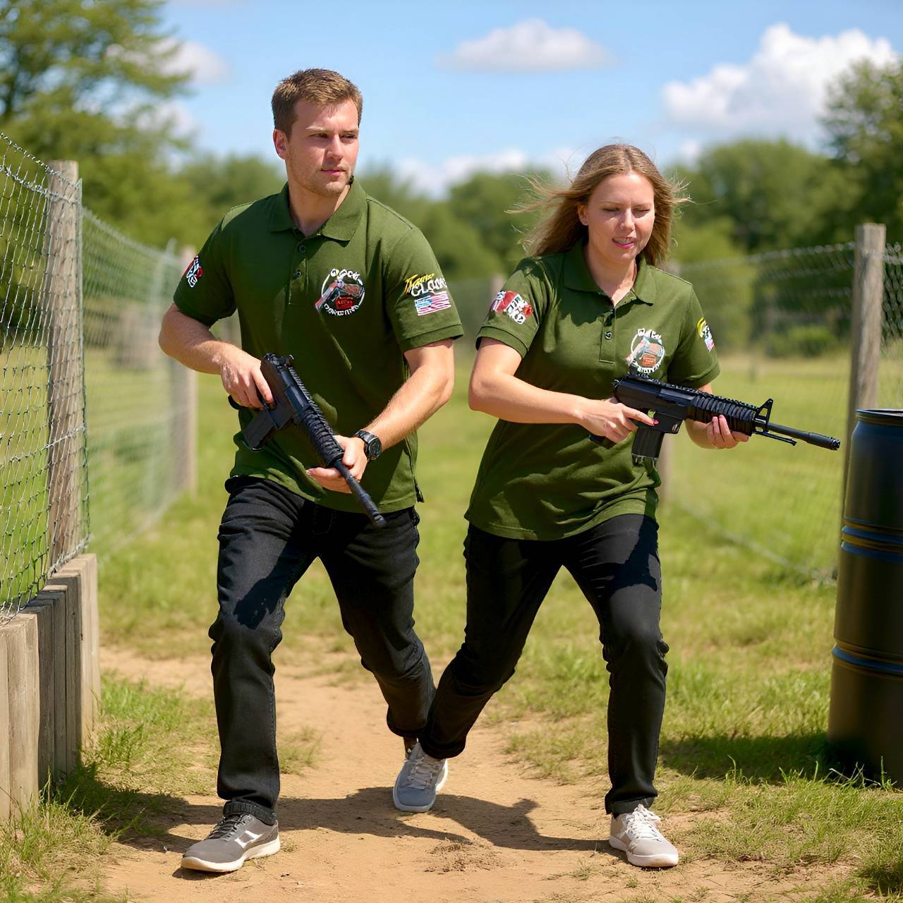 เสื้อยืดคอโปโลปักลายปืน 4จุด รอบตัว อก แขนสองข้าง หลัง ผ้าเนื้อดีทรงตรง