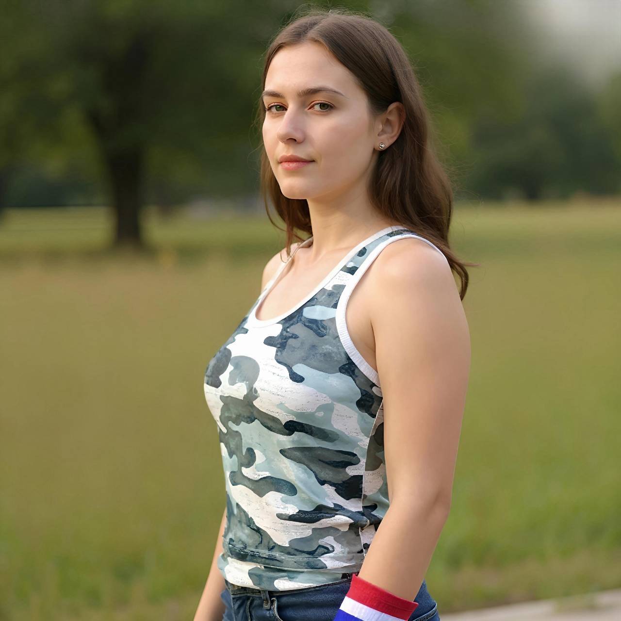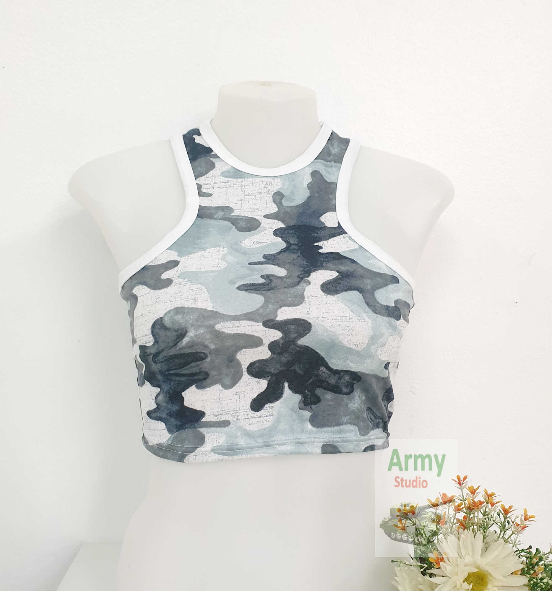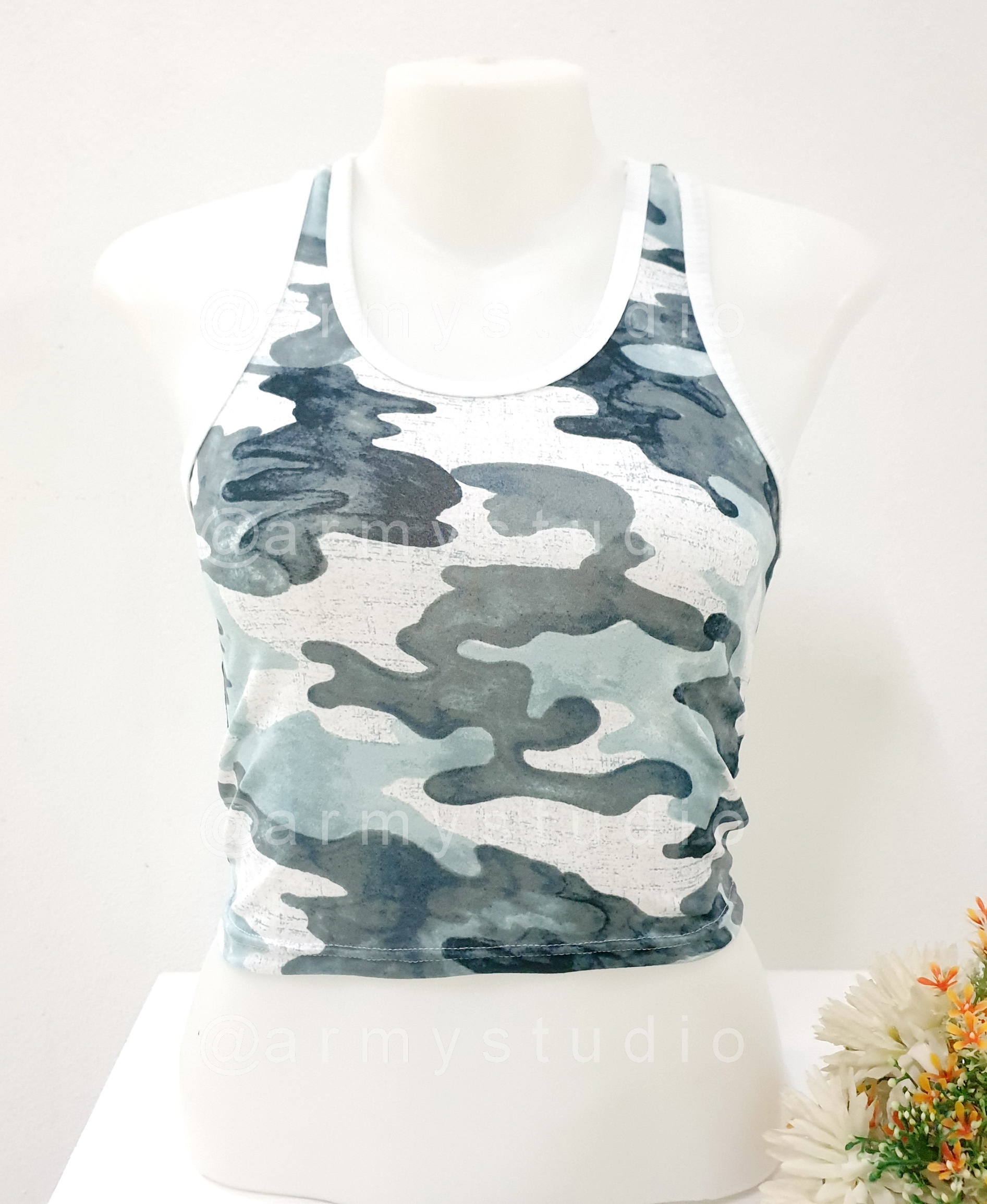 เสื้อยืดผู้หญิงลายพรางฟ้าเทา ฟรีไซร์